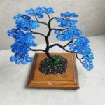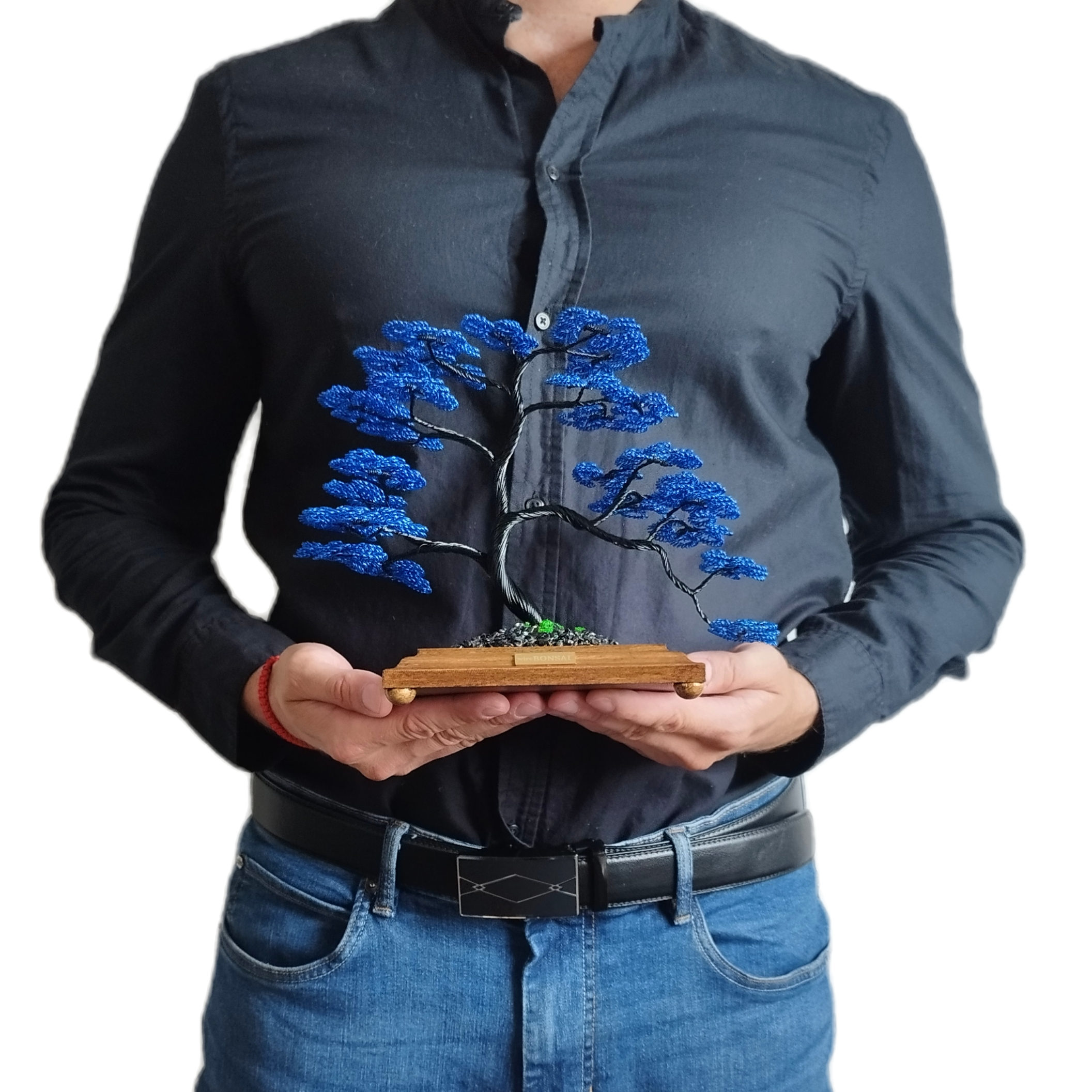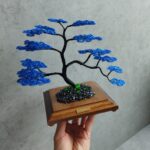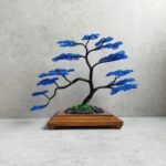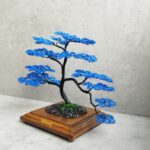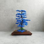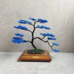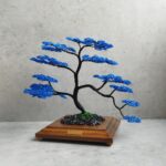 Spolu vytvárajú pôsobivý kontrast, kde sa sila a stabilita čiernej prelína s upokojujúcou hĺbkou modrej. Čierno-modrý bonsaj tak pôsobí ako umelecký symbol rovnováhy medzi silou a pokojom, ktorý prináša do priestoru eleganciu a duchovnú hĺbku.